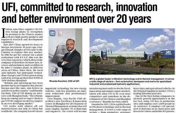 UFI濾清器集團(tuán)液壓部門亮相于上海舉辦的