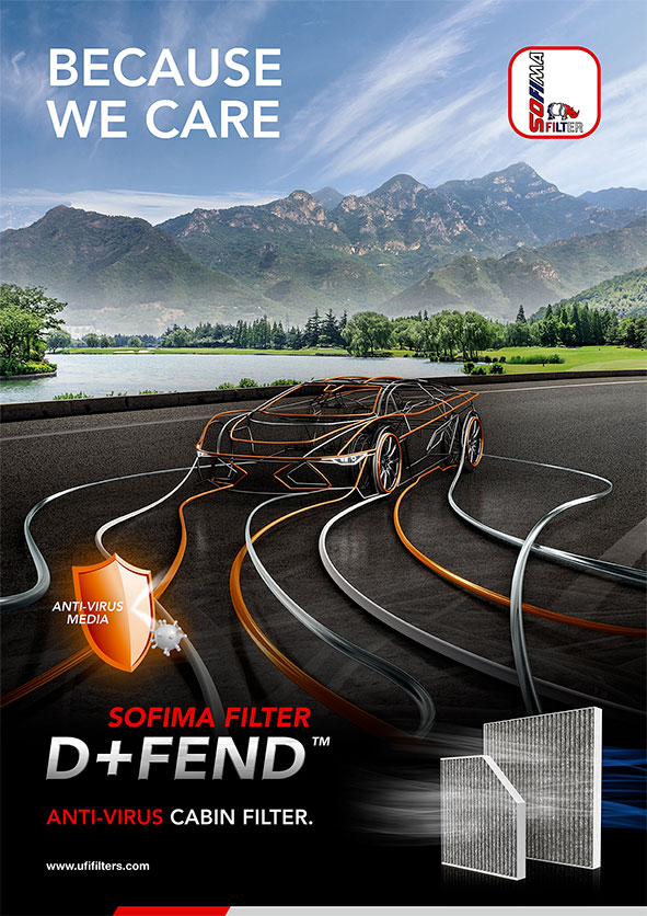 UFI Filters Group has chosen to give a meaningful name to this innovative filter media:?D+FEND. When applied to cabin air filters, this revolutionary material offers a defence, a clear improvement in the quality of the air and increased protection inside vehicles, during a historical period in which the health of the individual is absolutely paramount”.