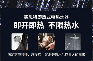 安全是舒適的前提。德恩特構建“主動防御+核心保障+實時監控”立體防護。(主動防御:開機自檢,物理+電子雙重防電墻,接地、超溫、燙傷、干燒、水壓過高保護;核心保障:發熱體高標準水電分離,PCB主板整體灌膠密封防潮防塵防漏電;實時監控:精密溫度傳感器+水流啟停裝置,無水不啟動,用水即響應。)