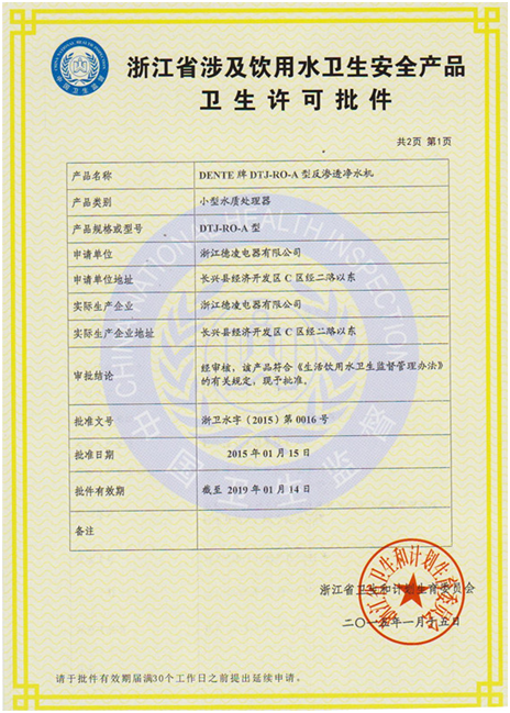 近日,德恩特系列凈水機經(jīng)國家權威部門產品與生產現(xiàn)場審核,符合【生活飲用水衛(wèi)生監(jiān)督管理辦法】的具體規(guī)定,批準生產與銷售。