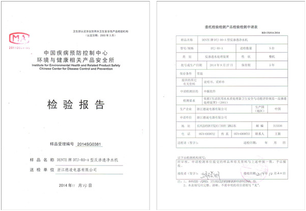 德恩特品牌全系凈水機已通過中國疾病預防控制中心環(huán)境與健康相關產品安全所檢驗合格。本月底將全獲得凈水機生產國家衛(wèi)生批件。